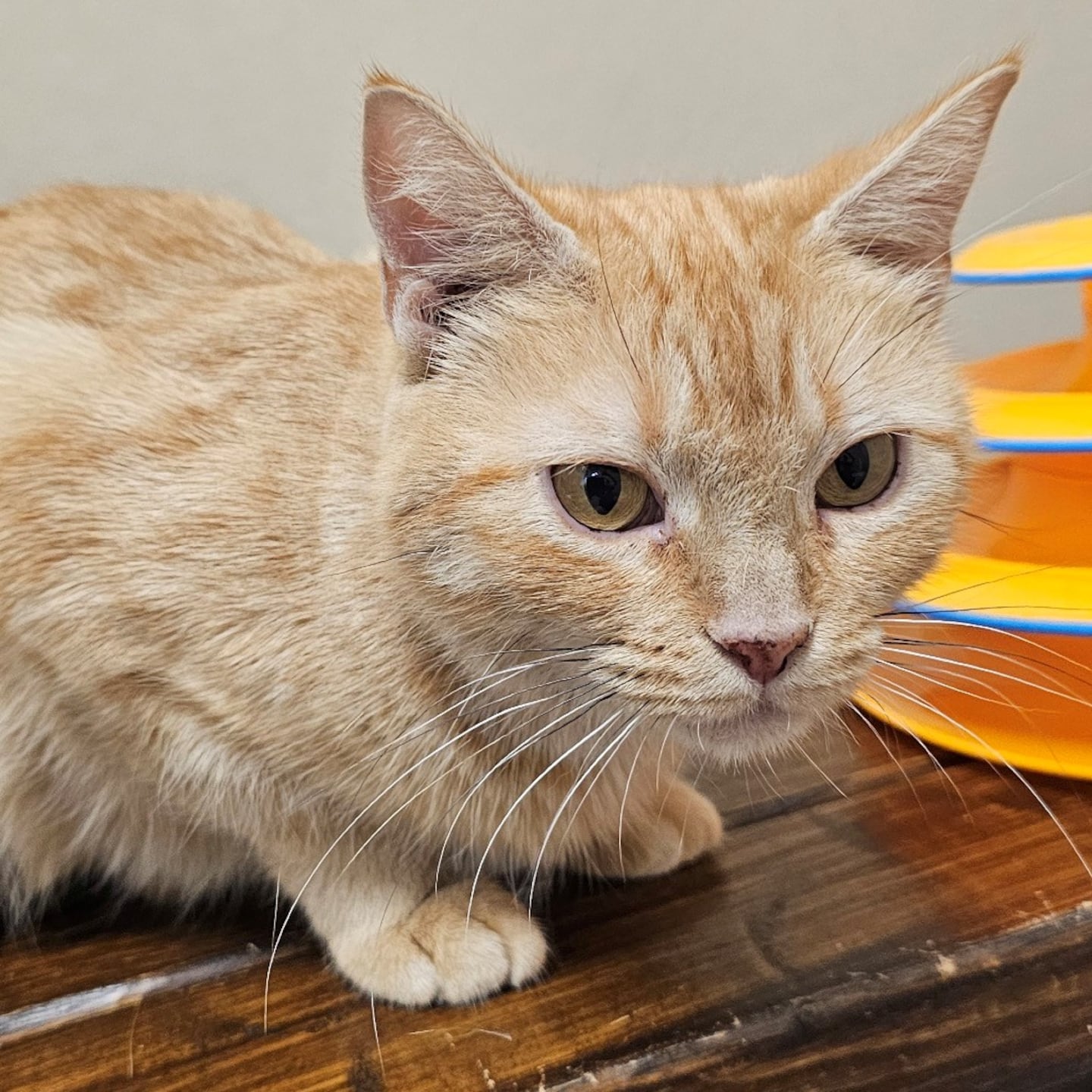 This pumpkin-colored girl is a real rarity…even at THIS time of year. Orange female kitties are hard to come by—most gingers are males. But her unusual “hue-ing” isn’t the only thing that makes Ms. Spice special. She is extremely friendly, sweet as honey, cuddly-as-can-be. And what’s more, Spice has aged perfectly! At almost a year-and-a-half, she’s mature enough to be calm and collected. Yet she still has a teaspoon or so of silly kitten-ness in her so she will satisfy your appetite for joy. This Spice has a little zest!